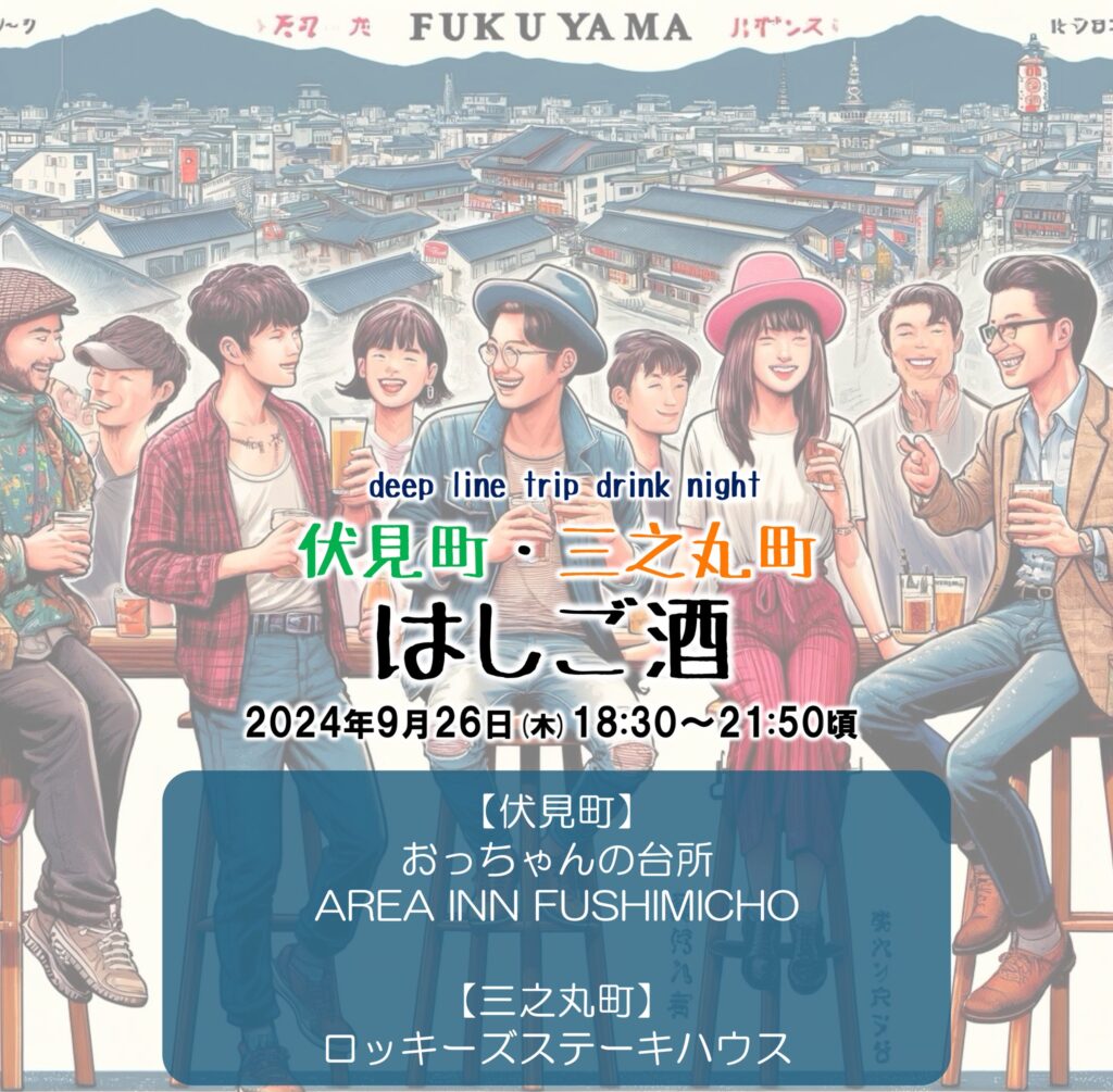 AREA INN FUSHIMICHO Fukuyama Castle Side から始まる飲み歩きをぜひ、体験してみてください。