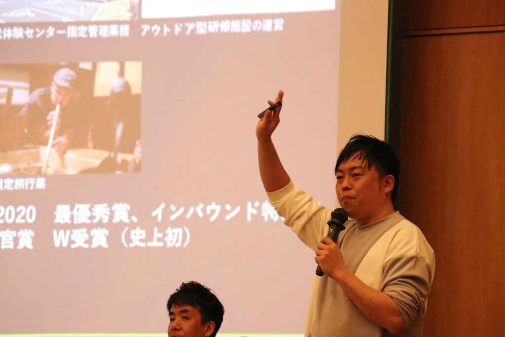 講師には、株式会社JTB広島支店営業第4課長である山口啓介さん、NPO法人湯来観光地域づくり公社の理事長である、佐藤亮太さん(通称 トンくん)のお二人です。