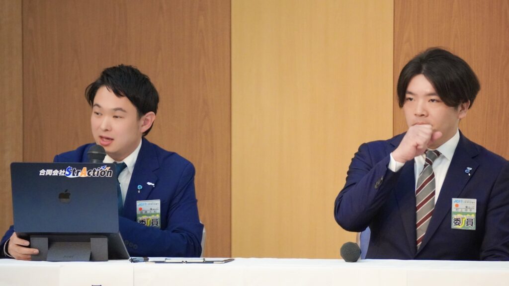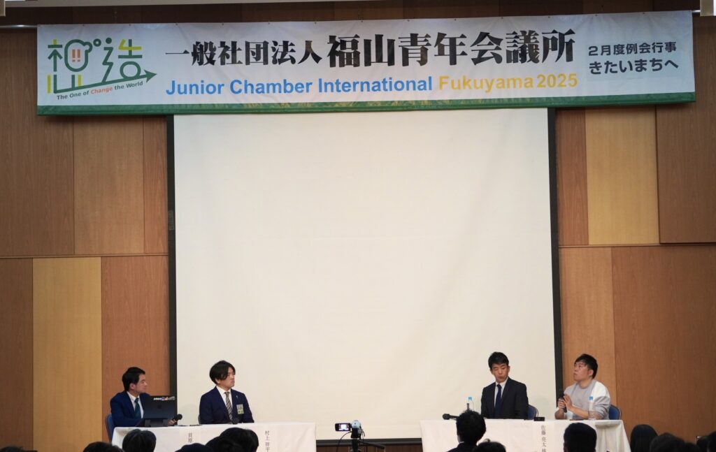 私は20分間の質疑応答のファシリテーターを担当し、福山青年会議所として聞きたい質問や、参加者からの質問を講師へ投げかけ、深める役割でした。