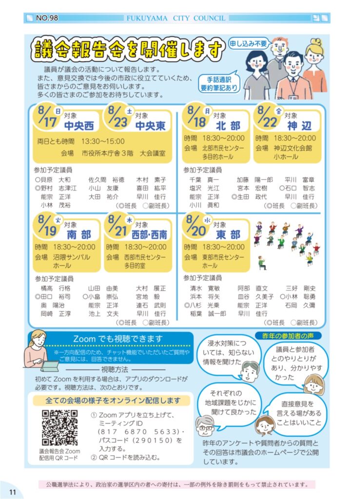 8月17日(日)に、中央ブロックの福山市議会による「議会報告会」を開催しました!