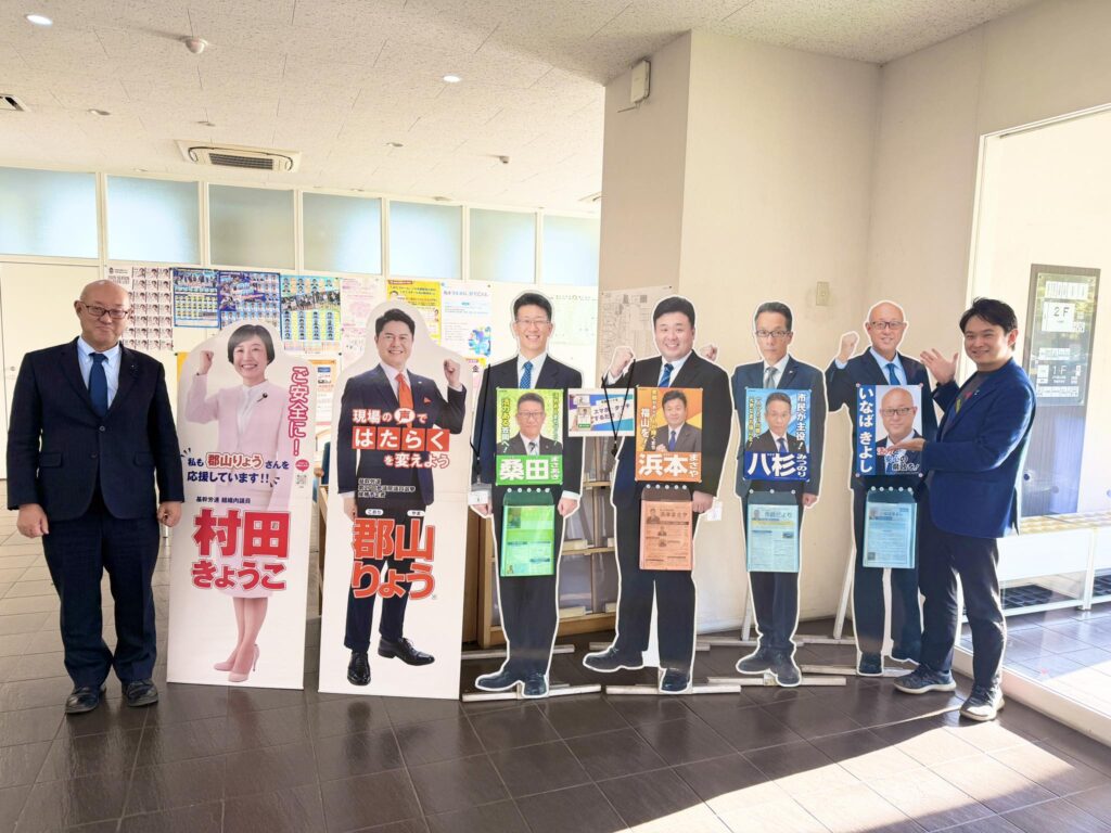 写真はJFEスチールの労働組合出身の全ての議員さんたちの等身大パネル。
