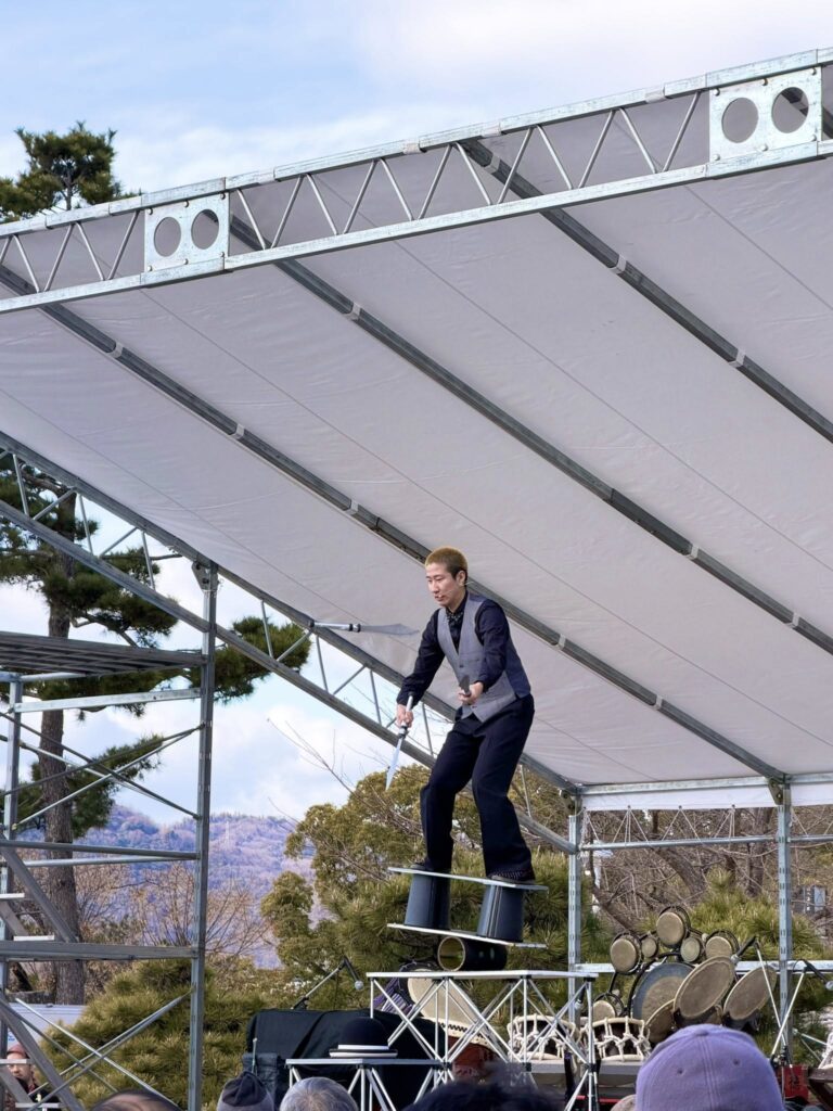 和太鼓や大道芸のステージで会場は大盛り上がり。恒例の豆まきでは、子どもから大人までたくさんの笑顔が弾けていました。