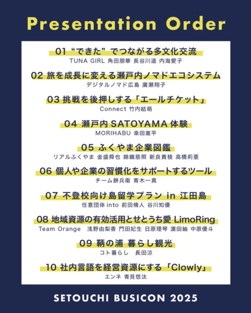 地域に根ざしたアイデアや、本気のプレゼンを間近で体感できる機会です。
