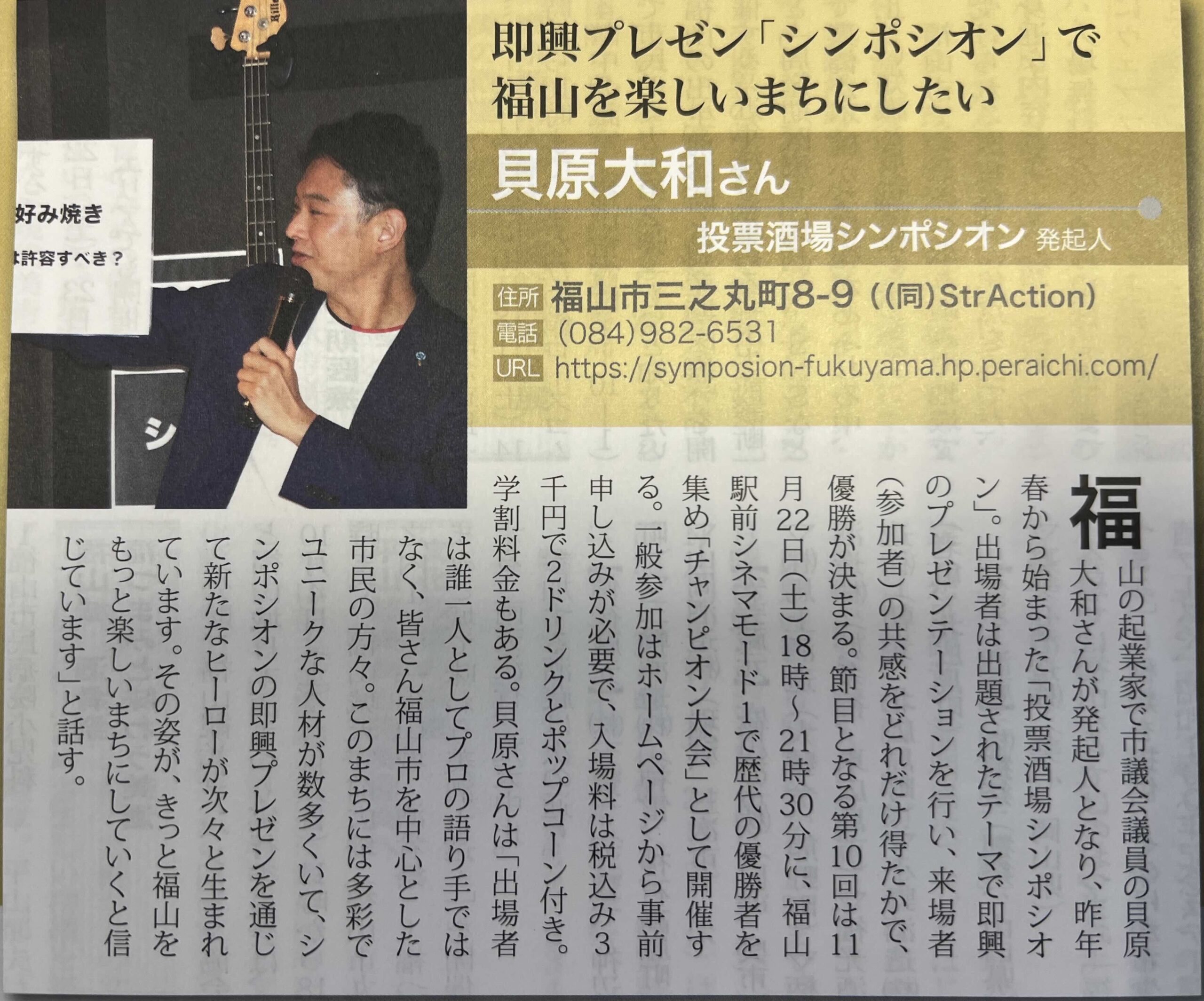 議員活動、街コン、被災地支援、リアル謎解きゲーム、スポーツ観戦イベント、書籍の出版、スマートフォン修理、漫画プロモーション、セルフ写真館、福山駅前商店会、その他活動等、これまでの活動を多くの方に応援していただき、そして注目していただくことができました。