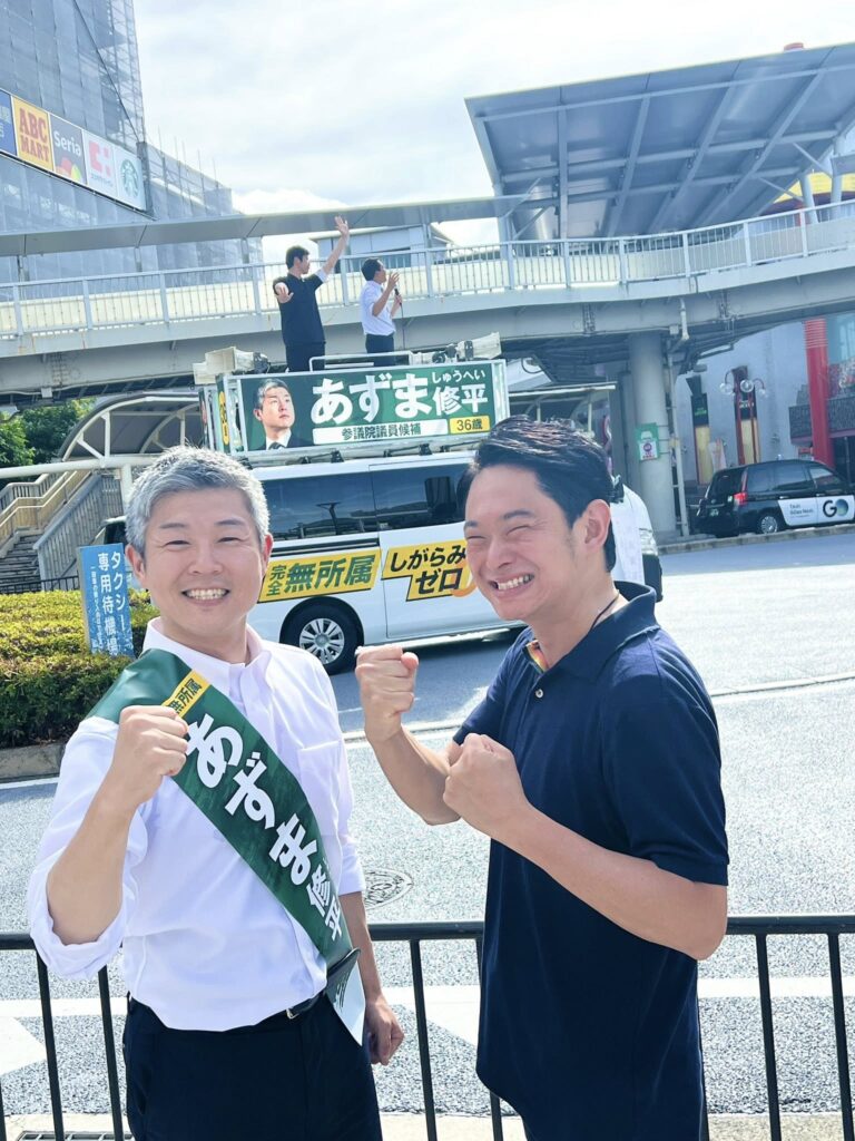 大阪選挙区の参議院議員候補 あずま修平さんの演説を聞いてまいりました。