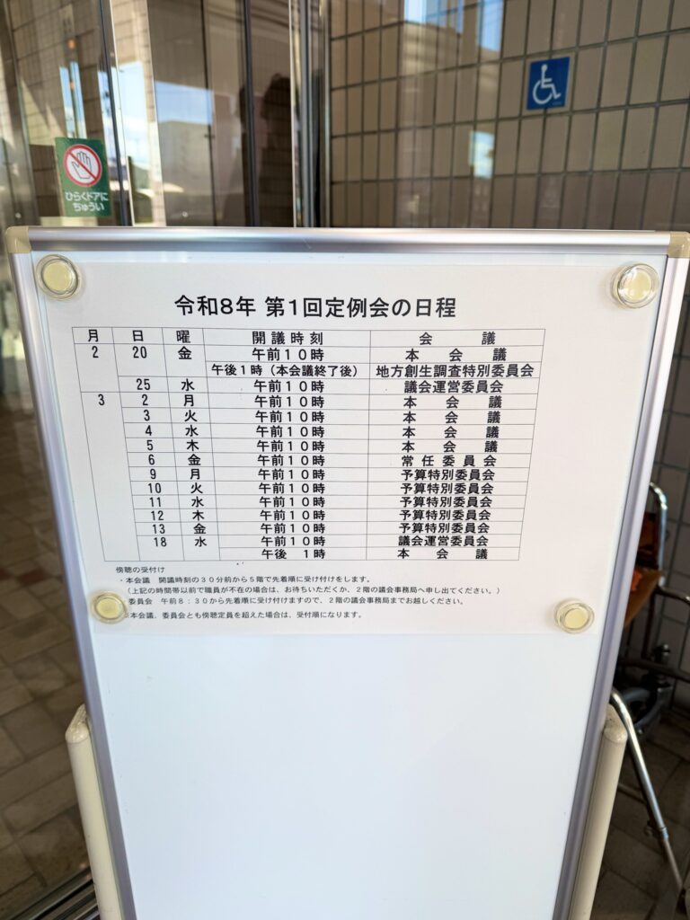 明後日2月20日(金)より、令和8年福山市議会3月定例会が始まります。