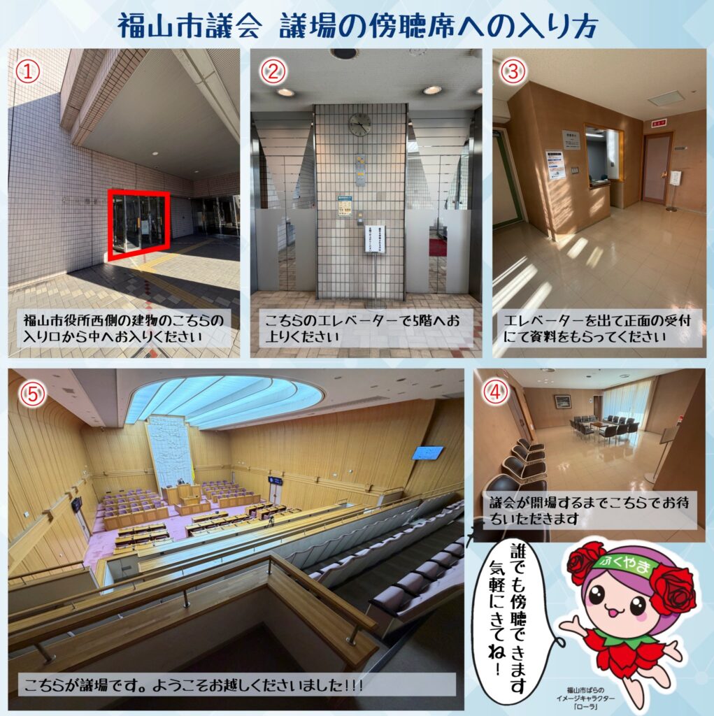 また、「議場への入り方が分かりにくい」とのお声をいただきましたので、はじめての方でも迷わないよう、流れを図にまとめました。